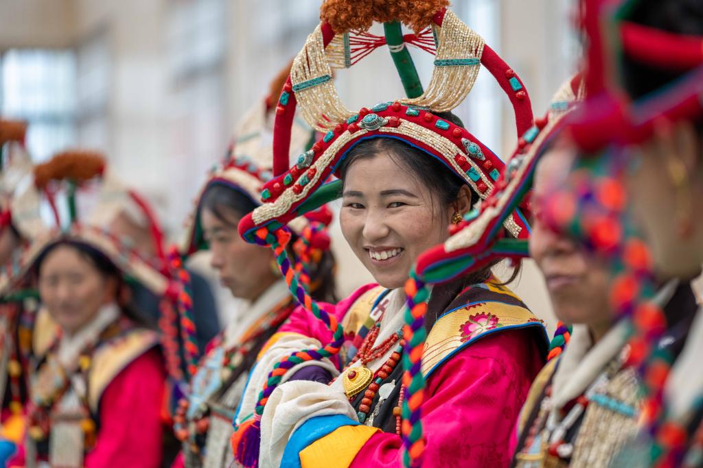 这是2024年9月25日在西藏日喀则市定结县拍摄的穿戴传统服饰的“萨尔谐钦”演职人员。新华社记者 旦增尼玛曲珠 摄