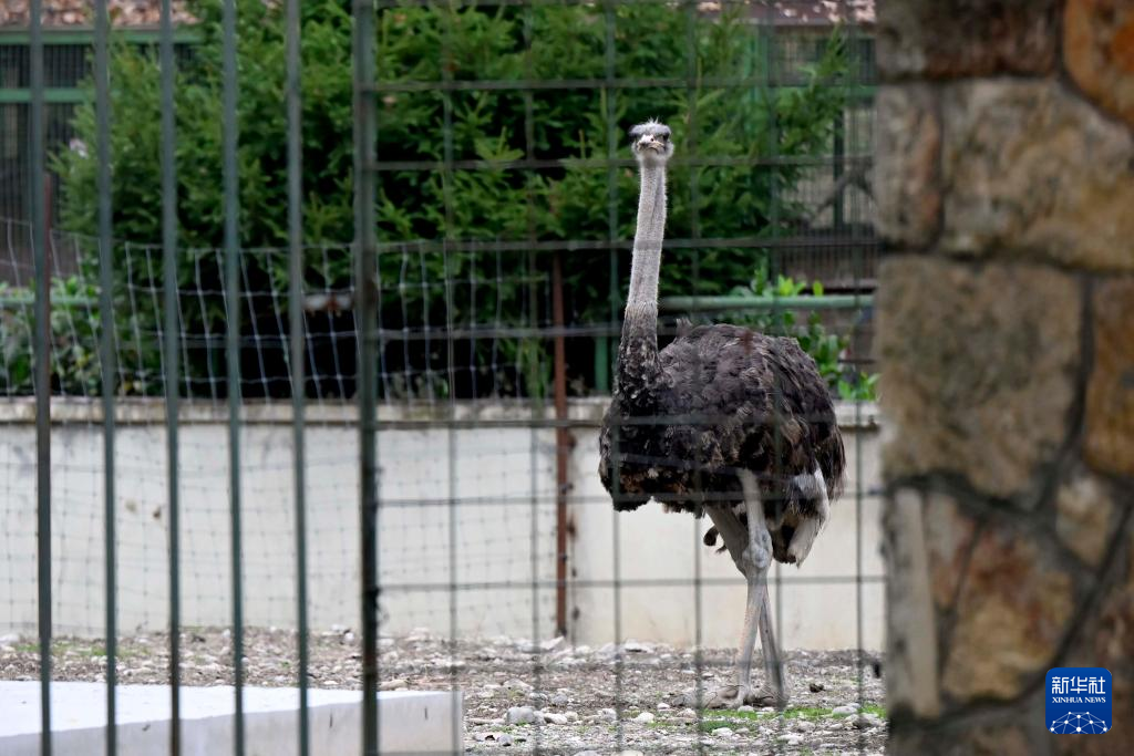 这是10月19日在北马其顿斯科普里动物园透过栅栏拍摄的鸵鸟。