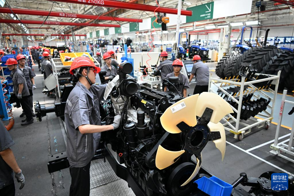 在潍柴雷沃智慧农业科技股份有限公司拖拉机工厂,工人在装配智能拖拉机(8月21日摄)。新华社记者 李紫恒 摄