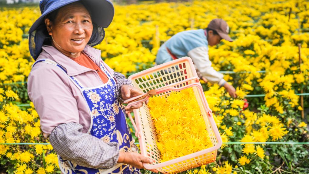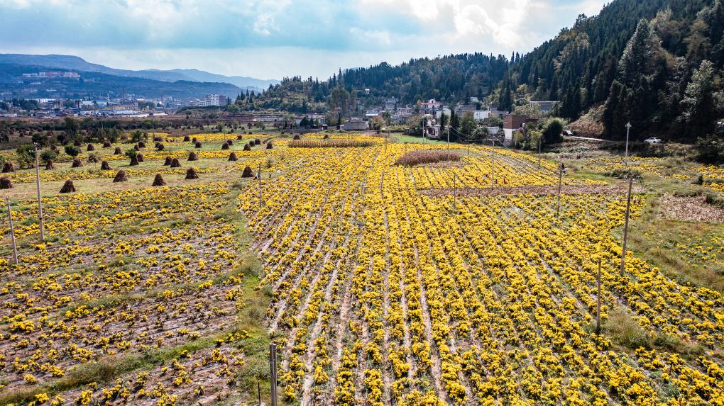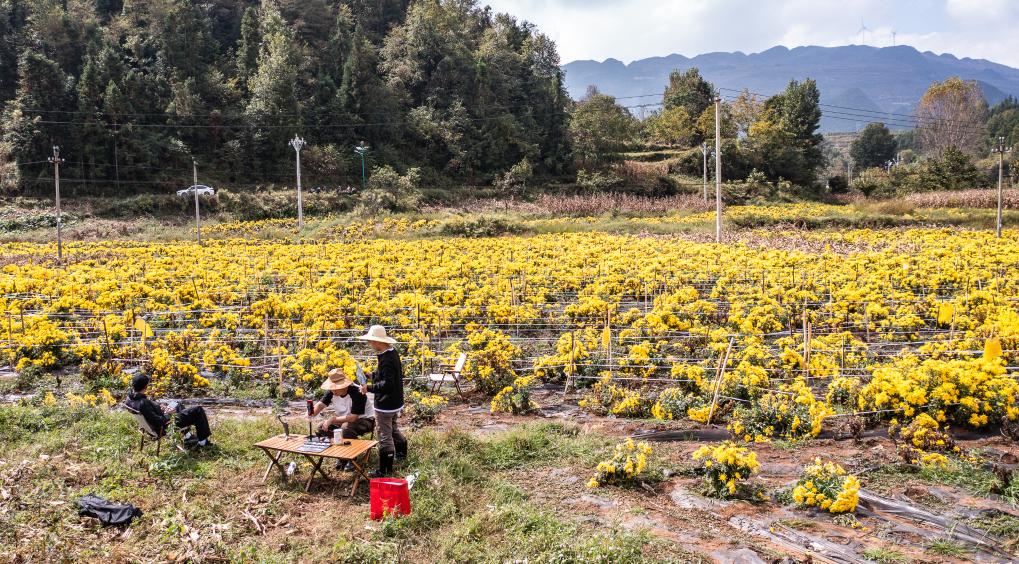 金秋时节,贵州省六盘水市钟山区大湾镇种植的300余亩金凤菊喜获丰收,田间地头一派繁忙景象。近年来,当地采取“公司+基地+农户”的形式发展菊花种植加工产业,以土地流转、用工等形式带动周边群众就业增收。