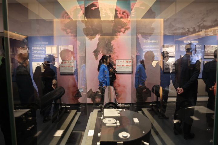 10月16日,中国科学院与“两弹一星”纪念馆在系统改造升级后,正式向社会重新开放。图为观众在纪念馆内参观展览。新华社记者 金立旺 摄