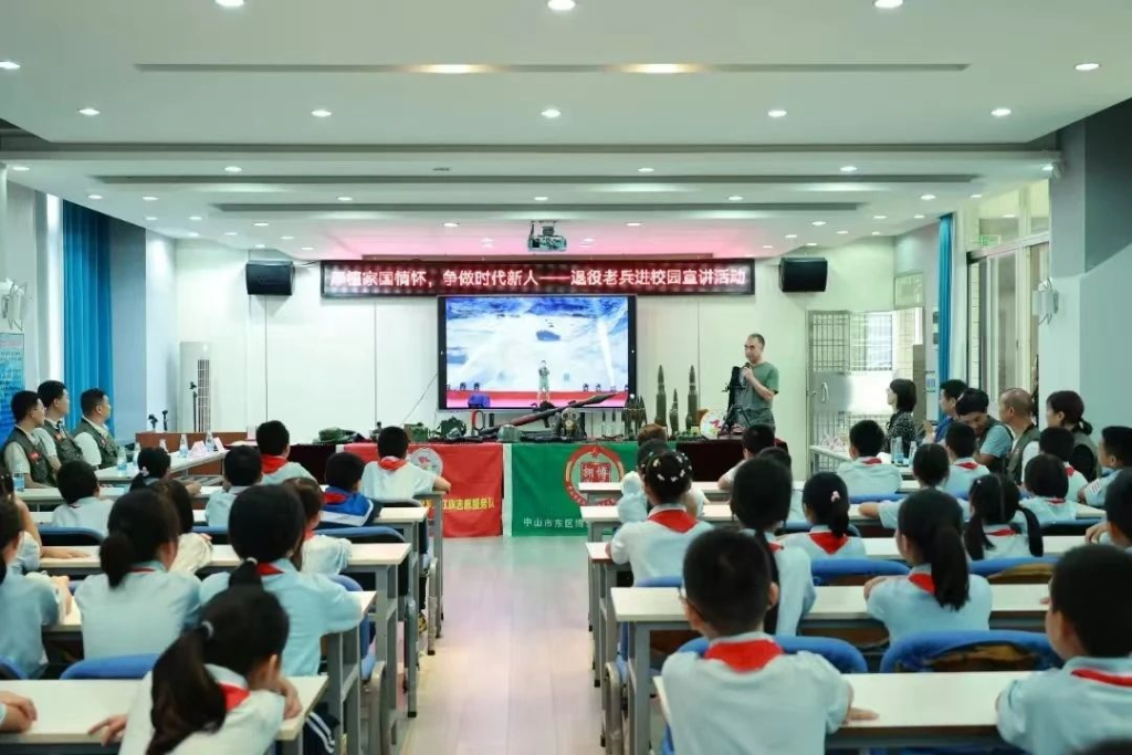 “全民国防教育月”期间,广东中山市组织开展“退役老兵进校园”宣讲活动。(全国普法办供图)