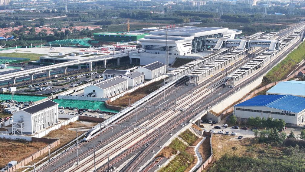 10月21日,首发列车驶入潍烟高铁莱州站。新华社记者 郭绪雷 摄