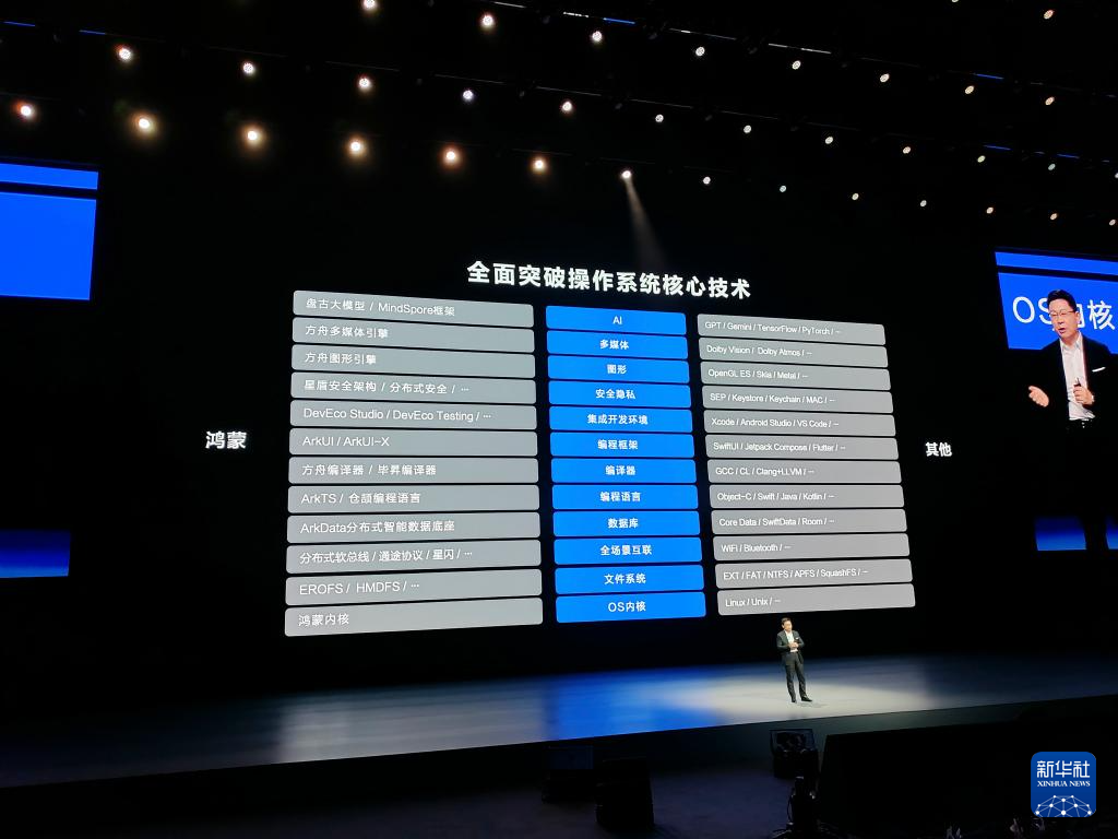 在当天的发布仪式上,华为常务董事、终端BG董事长、智能汽车解决方案BU董事长余承东表示,原生鸿蒙基于OpenHarmony全栈自研架构,从操作内核、编程语言、集成开发环境、AI框架和大模型等实现全栈自研,打造了全球第三个移动操作系统。