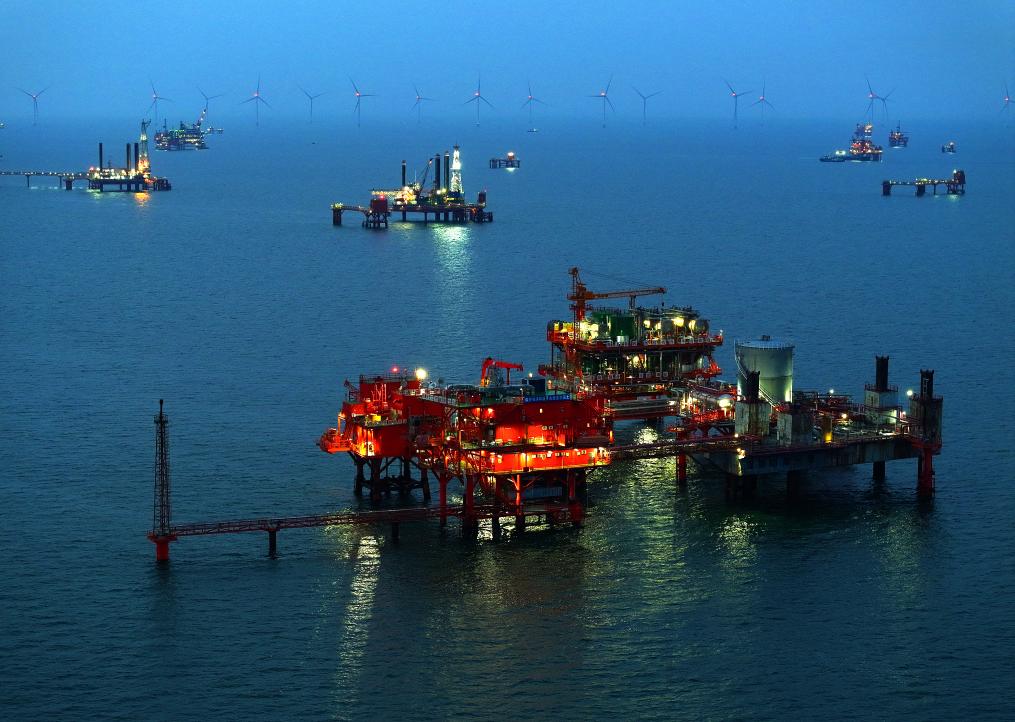 这是6月4日拍摄的胜利海上油田埕岛中心一号平台(无人机照片)。新华社记者 范长国 摄