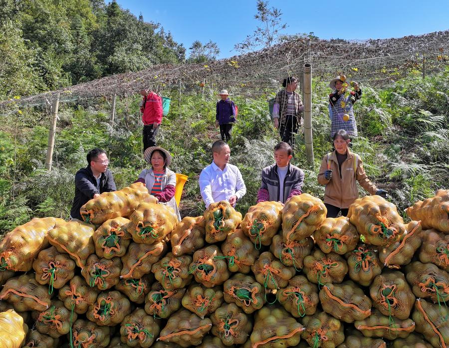 10月23日,古蔺县龙山镇纪检干部(前排左一、左三)对“问廉坝坝会”群众反映问题回访正元村群众。新华社发