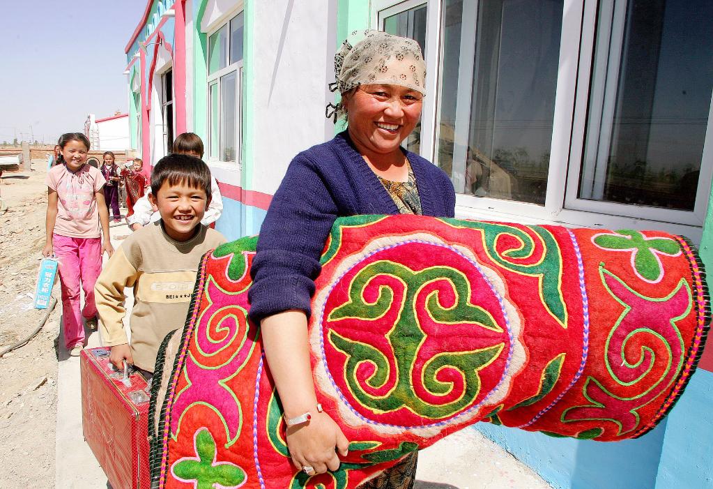 这张照片拍摄于2006年,新疆巴里坤县一名哈萨克族妇女带着孩子们搬进了新家,阳光照在她红扑扑的脸蛋上,身后的孩子们脸上都挂着笑容,画面情绪饱满,很有感染力。