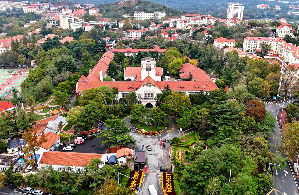 鸟瞰中国海洋大学鱼山校区(2024年10月21日摄,无人机照片)。