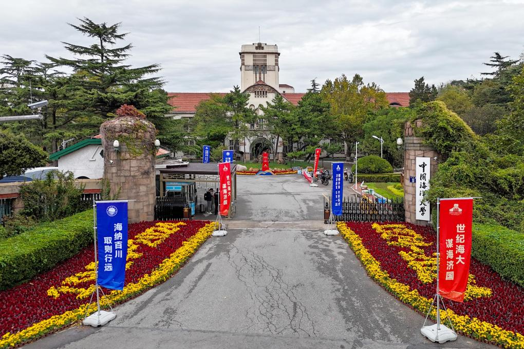 中国海洋大学鱼山校区校门(2024年10月21日摄)。