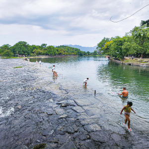 人们在灵渠周围戏水玩耍。本组图片均由新华社记者 韩松 摄