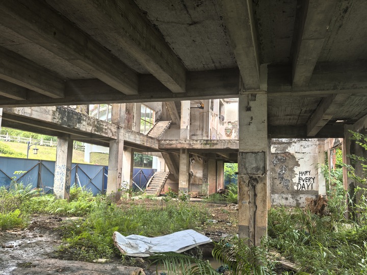 图为南宁市邕江畔的一处废弃建筑。新华社记者覃星星 摄