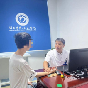 9月19日,在湖南省第三人民医院,医生正在给年轻的痛风患者诊断。(受访者供图)