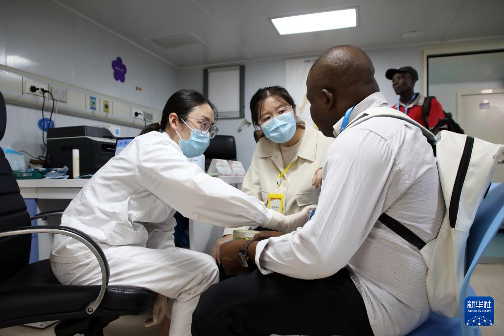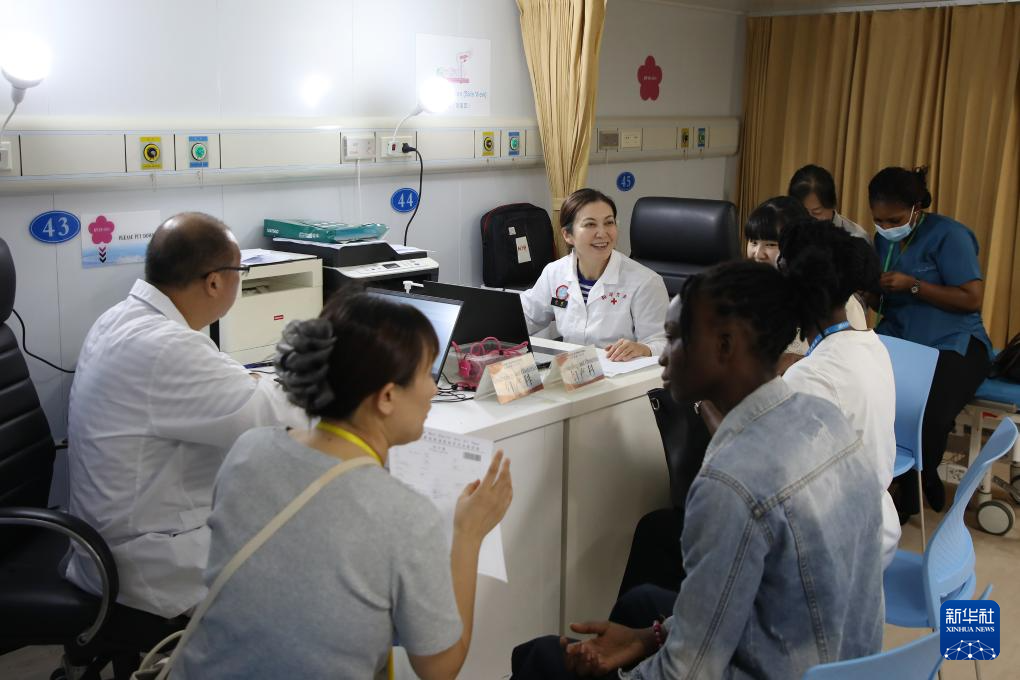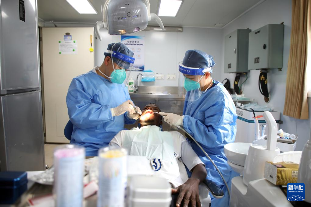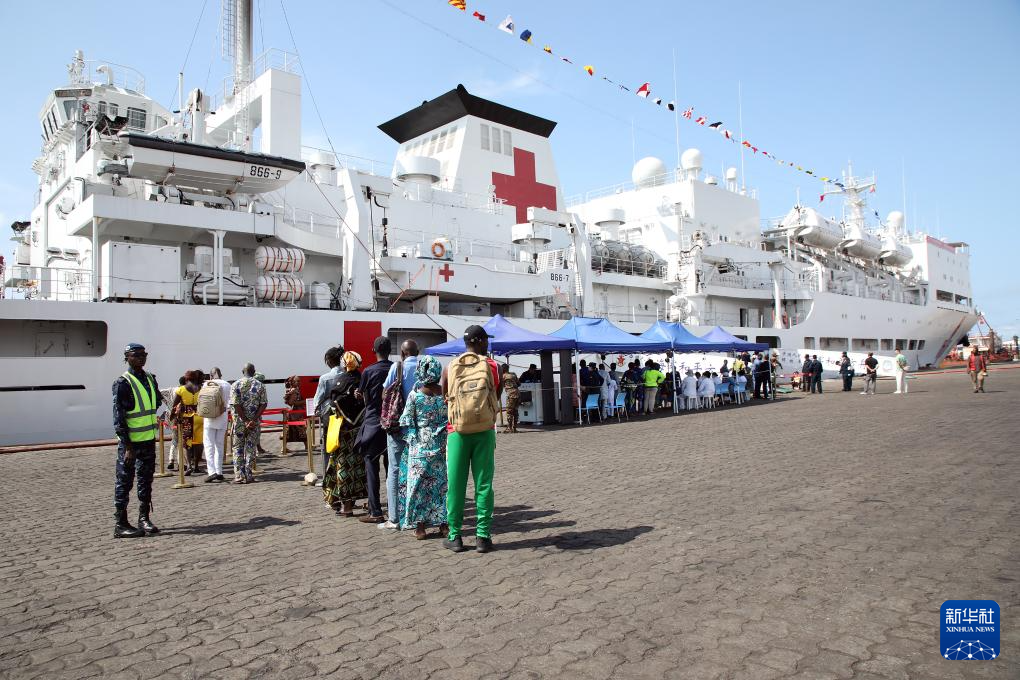 10月21日,中国海军“和平方舟”号医院船在贝宁科托努开展医疗服务。新华社发(刘志磊摄)