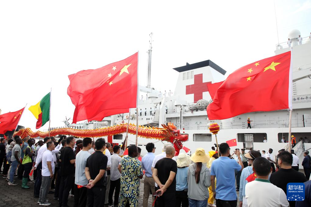 10月20日,中国海军“和平方舟”号医院船在贝宁科托努开展医疗服务。新华社发(刘志磊摄)