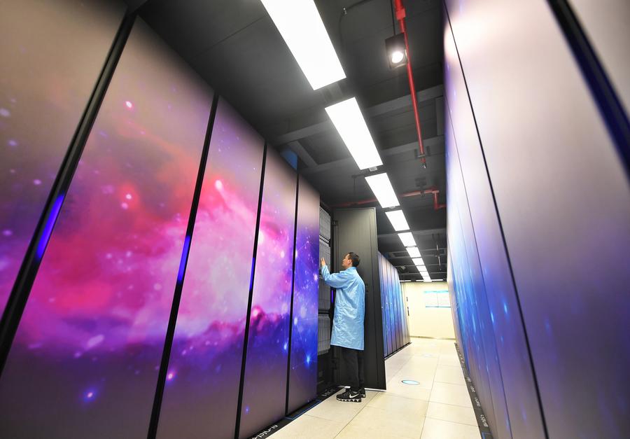 2023年2月14日,国家超级计算成都中心科研人员在巡检机房设备。新华社记者 刘坤 摄