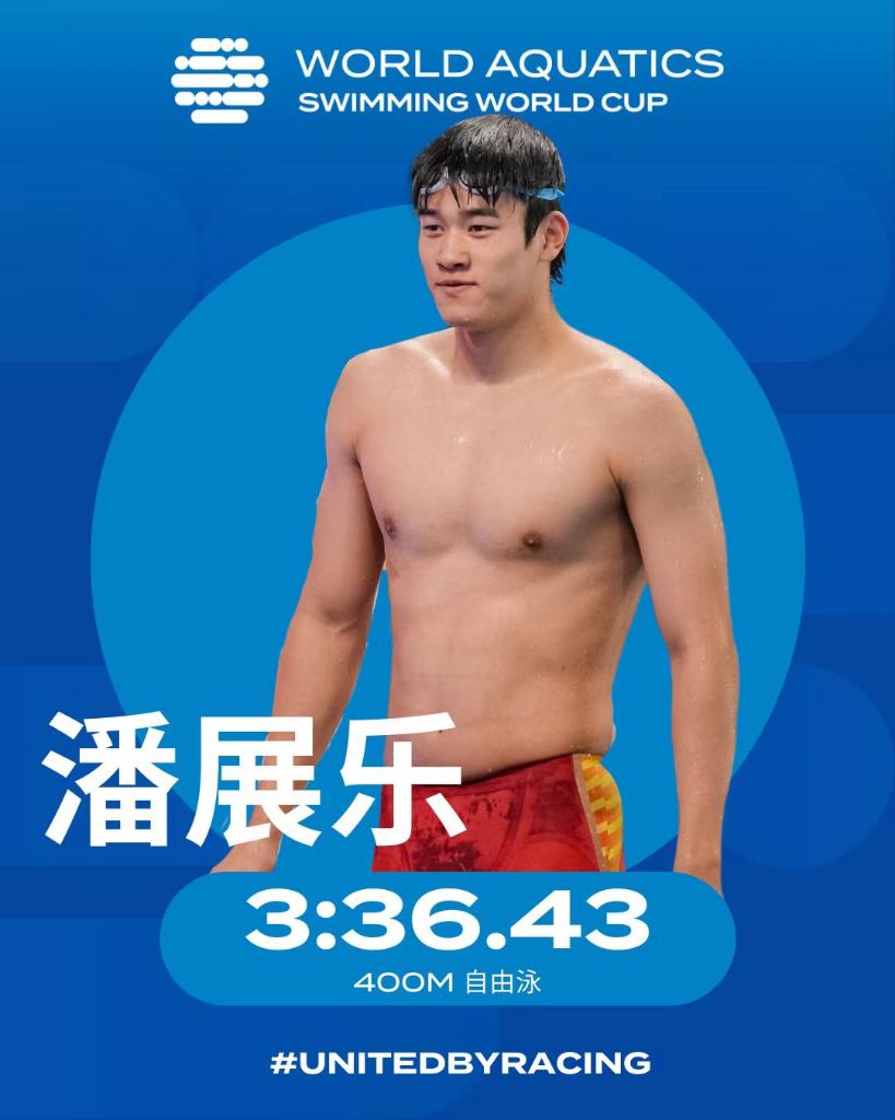 在男子400米自由泳决赛中,潘展乐采取最后100米冲刺的方式强力反超其他选手,以3分36秒43的个人最好成绩力拔头筹,并达到参加年底布达佩斯短池世锦赛该项目的成绩A标。