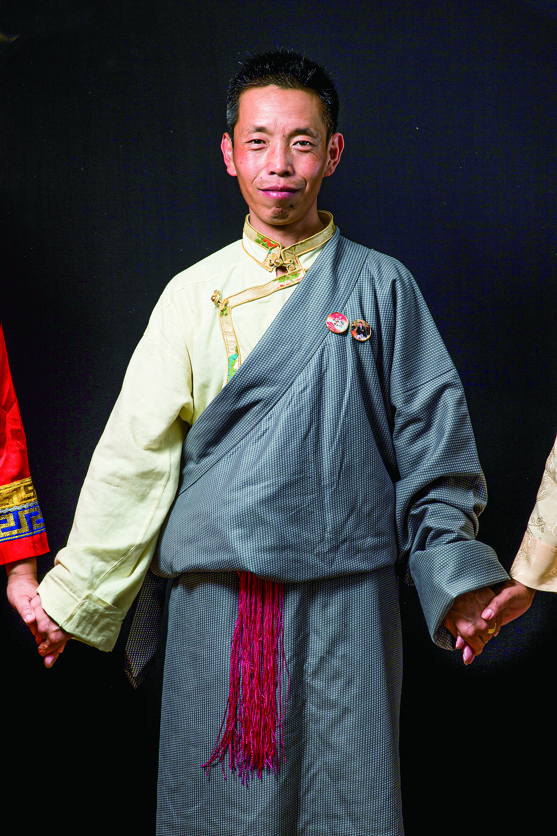 宋玉刚穿着藏族服饰(2015年9月30日摄)。新华社记者金立旺摄