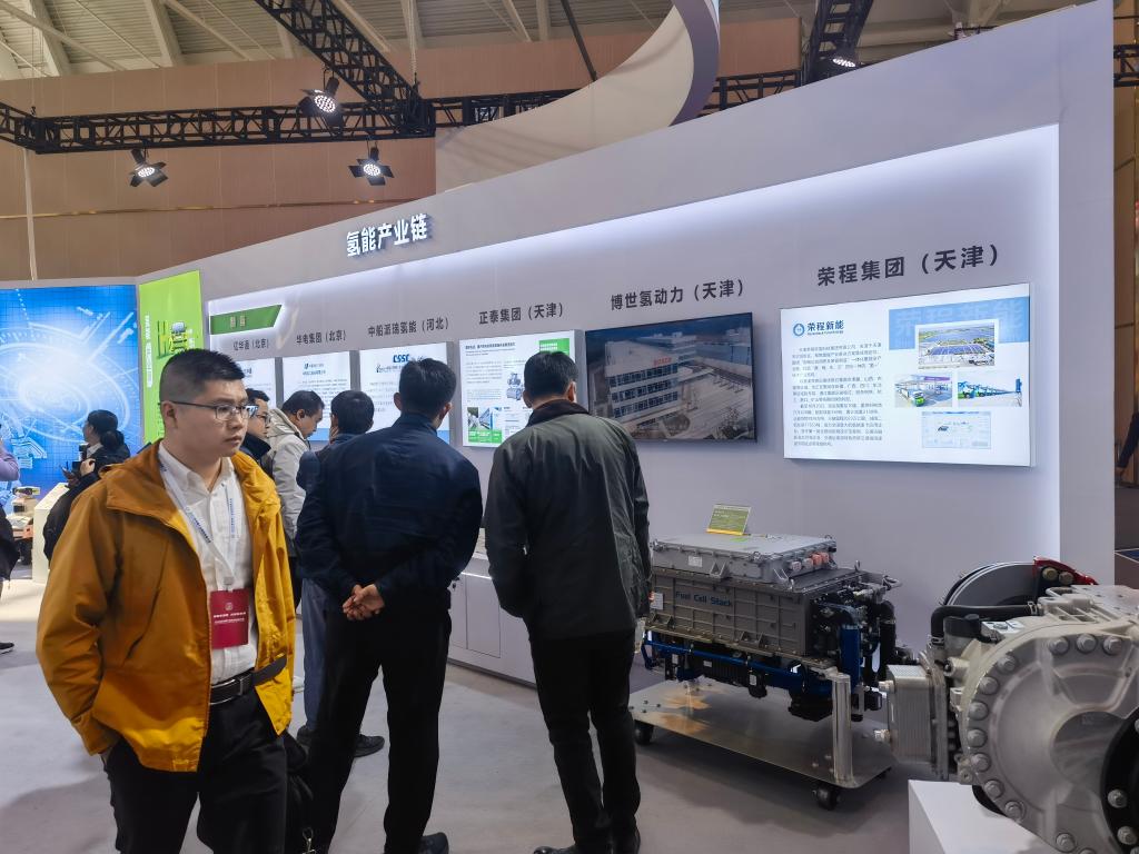 北京亿华通科技股份有限公司展出的240KW氢燃料电池发动机,能满足49吨牵引车高速应用场景,不少观众前来咨询洽谈。“我们正在开发300KW的氢燃料电池发动机,希望借助氢能产业链推介会,进一步加强上下游合作。”公司常务副总经理于民说。