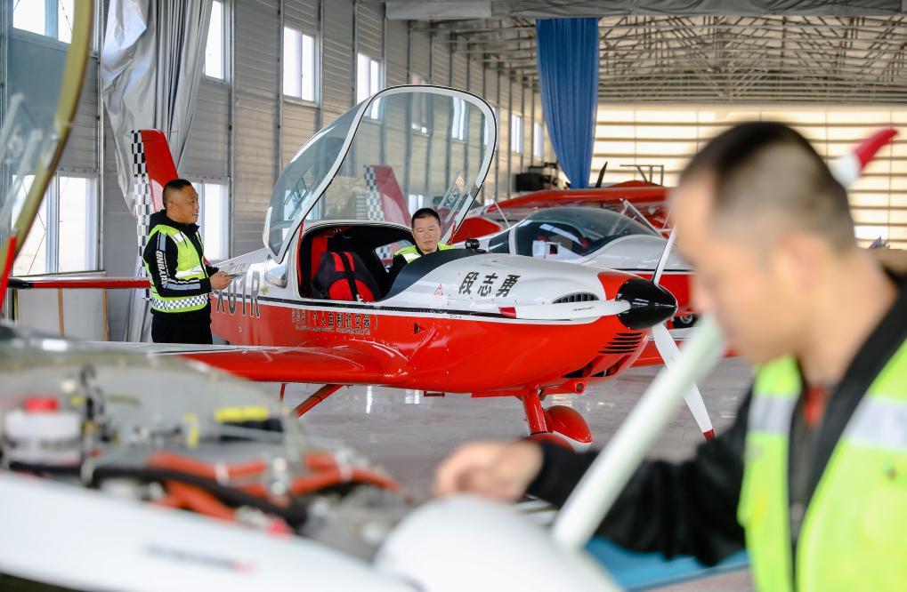 衡水桃城机场工作人员正在对飞机做航前检查。新华社记者任丽颖 摄