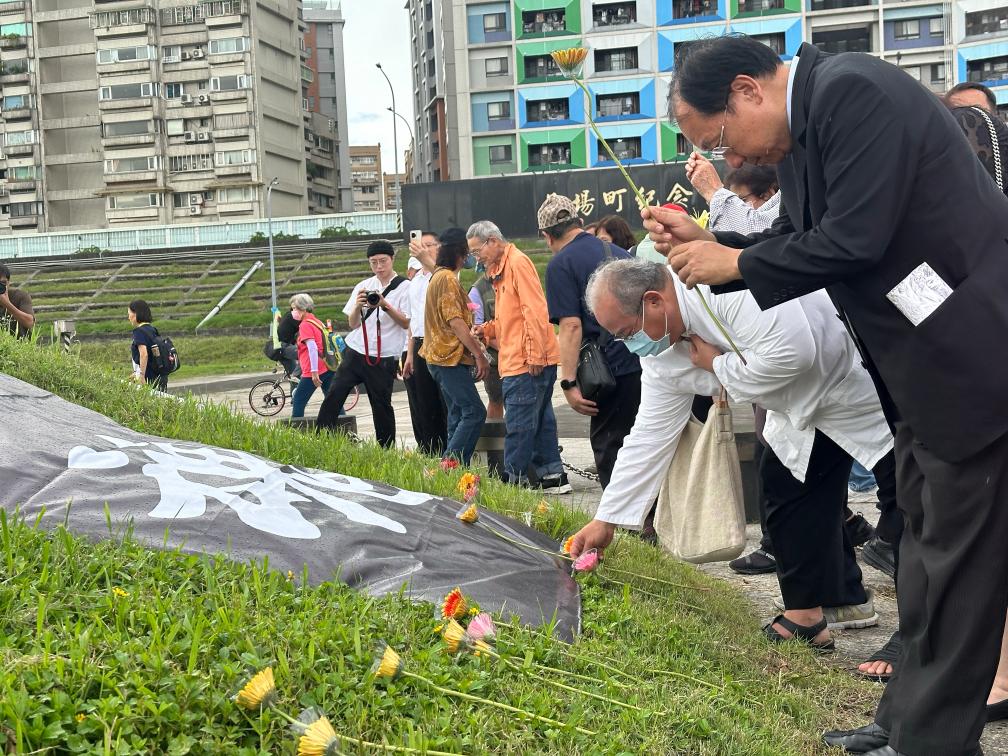 活动最后,与会者在公园里的纪念丘前向牺牲烈士献上鲜花,寄托哀思。纪念丘上铺陈的巨大条幅醒目地写着“人民忠魂”四个大字。当日追思慰灵大会祭文写道:火种不息、精神不灭、真理不死!没有任何人、任何政党、任何势力能够杀死前辈、先辈们的思想与信念,也没有任何人、任何政党、任何势力能够撼动这座“人民忠魂”。