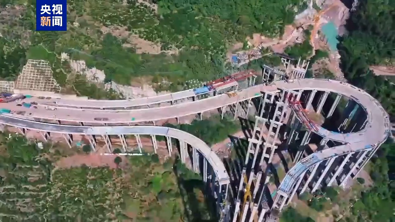 正在建设中的四川宜宾至攀枝花高速,宜金段新市互通匝道小半径曲线梁桥架设施工圆满完成。该梁桥也成为国内首座使用架桥机架设的42米超小半径曲线梁桥,标志着我国在大型桥梁建设领域,采用架桥机吊装异形预制梁工艺取得突破性进展。