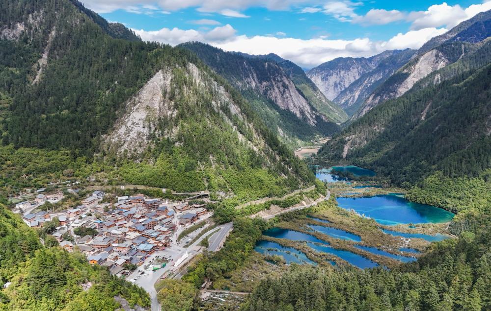 九寨沟景区内的树正寨和树正群海。新华社记者 王曦 摄