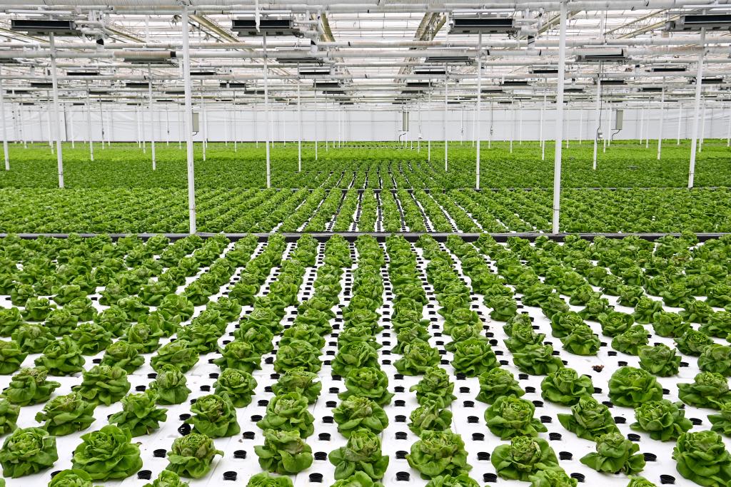 10月26日,杨凌智慧农业示范园智慧温室内通过无土栽培技术种植的蔬菜。新华社记者 邹竞一 摄
