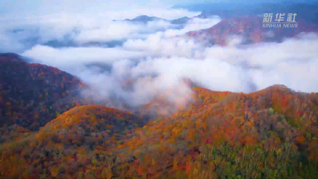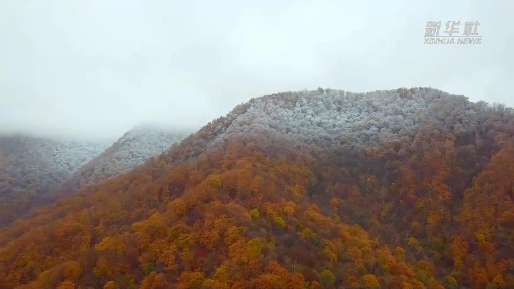近日,随着气温下降,吉林局部地区出现了下雪天气。地处长白山南麓的吉林省集安市有着“塞外小江南”之称,一条老岭山脉自东北向西南横贯全市,形成一道天然屏障,造就了岭南、岭北两个小气候区。雨雪过后,岭北已现霜白树挂,岭南却还是五花山美景。从高空俯瞰下去,一山分隔两重天,造就了一半秋未尽、一半冬已至的独特景观。