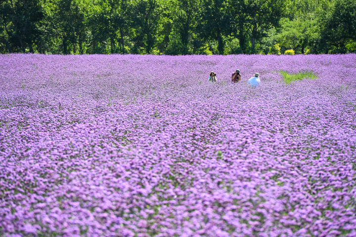 2024年8月26日,游客在查干湖花海拍照留念。新华社记者 张楠 摄