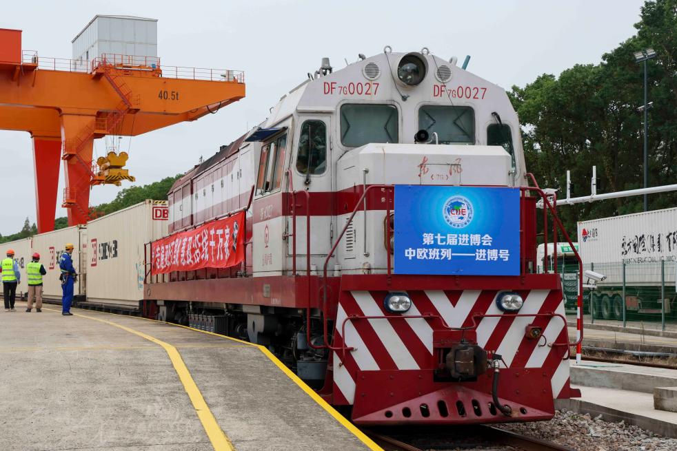 10月20日,首趟“中欧班列——进博号”抵达上海铁路物流中心闵行货场中储专用线。新华社记者王翔 摄