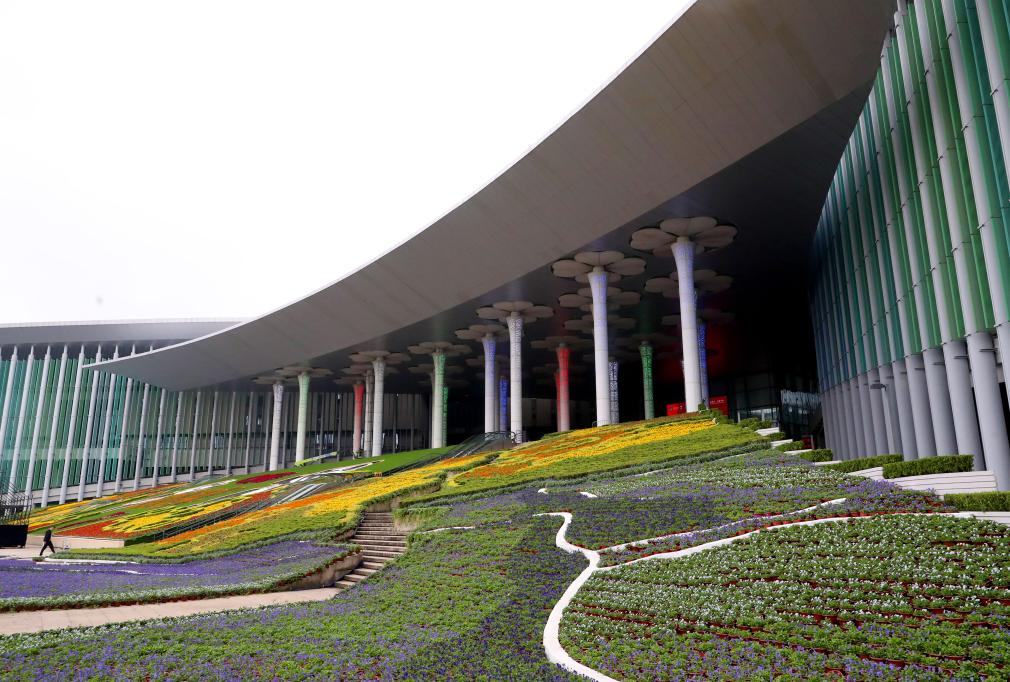 这是10月22日拍摄的国家会展中心(上海)南广场花坛装饰。新华社记者方喆 摄