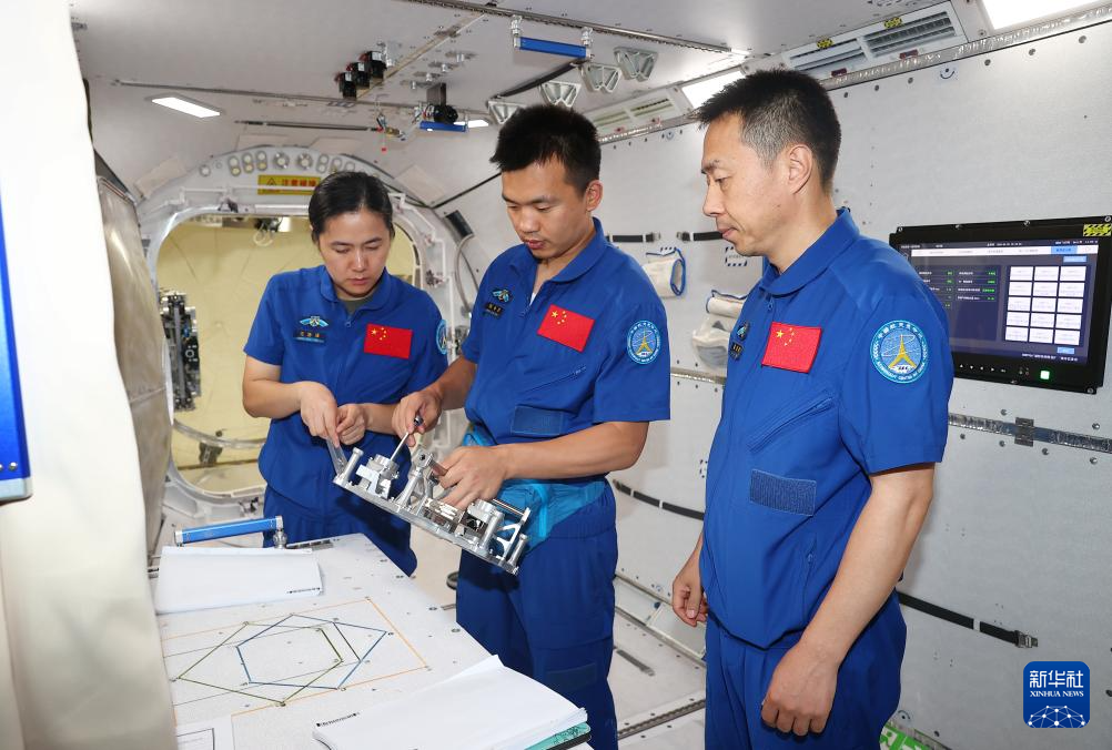 神舟十九号航天员乘组进行梦天舱操作训练(2024年7月25日摄)。新华社发(徐部摄)