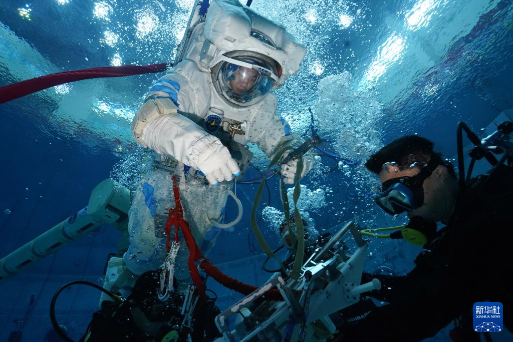 神舟十九号航天员宋令东进行水下训练(2024年8月30日摄)。新华社发(孔方舟摄)
