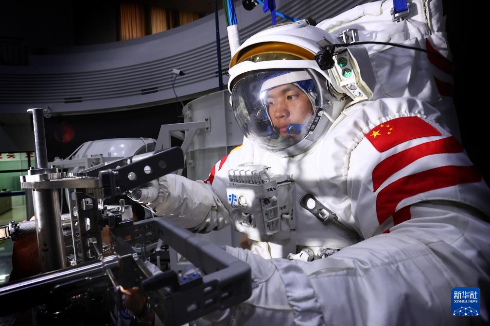 神舟十九号航天员王浩泽进行出舱程序训练(2024年6月26日摄)。新华社发(徐部摄)