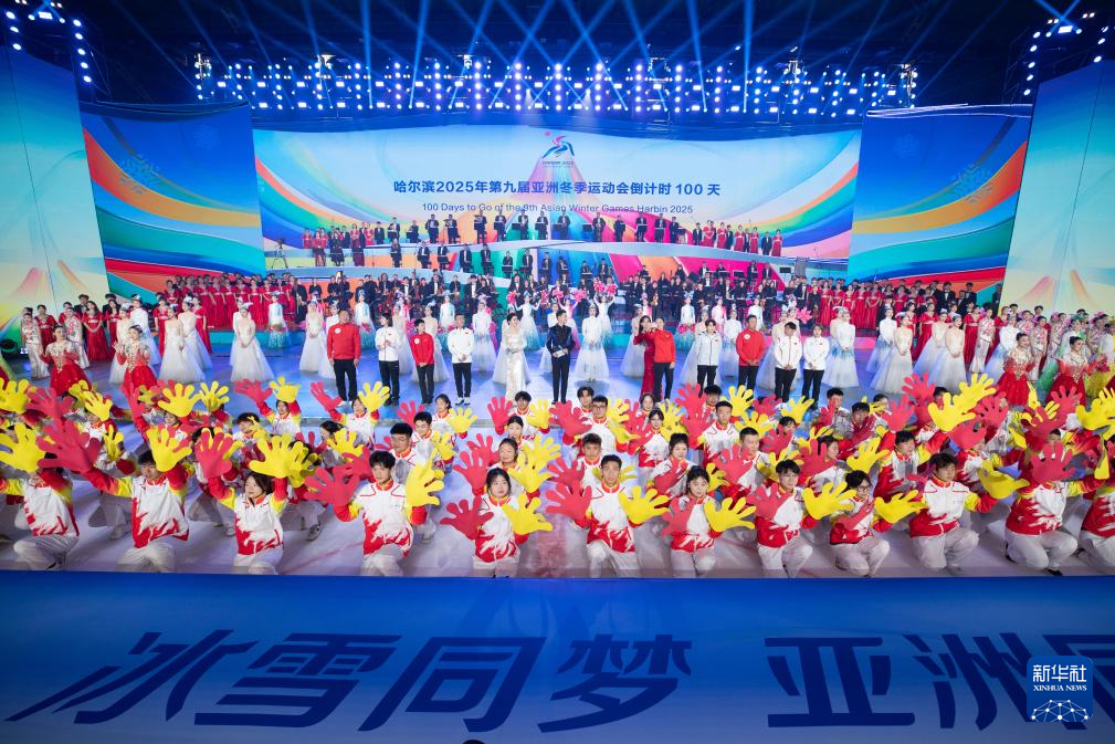 当日,第九届亚洲冬季运动会倒计时100天主题活动在哈尔滨冰球馆举行。新华社记者 张涛 摄
