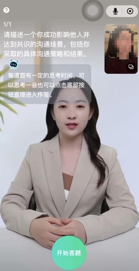 一个多月来,应届毕业生牛牛已参加了五场AI面试。最近这次,面试持续半个多小时,一共7道问题,每道准备时间30秒,作答不超过5分钟;如果对回答不满意可以补录1次,AI根据回答内容还进行了2次追问。