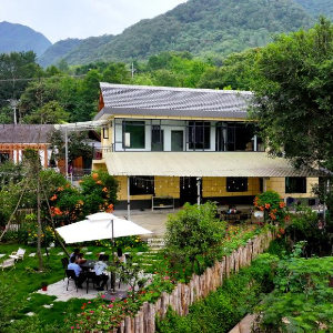 陕西省汉中市留坝县紫柏街道小留坝村的民宿(2023年7月24日摄,无人机照片)。新华社记者 刘潇 摄