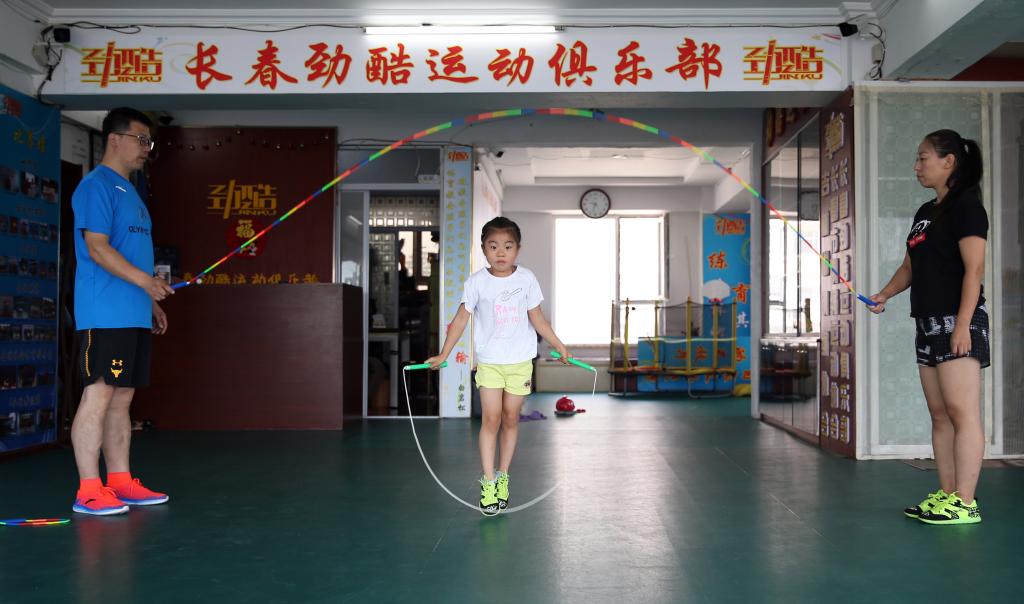 图为于璨伊(中)在长春劲酷运动俱乐部训练中。