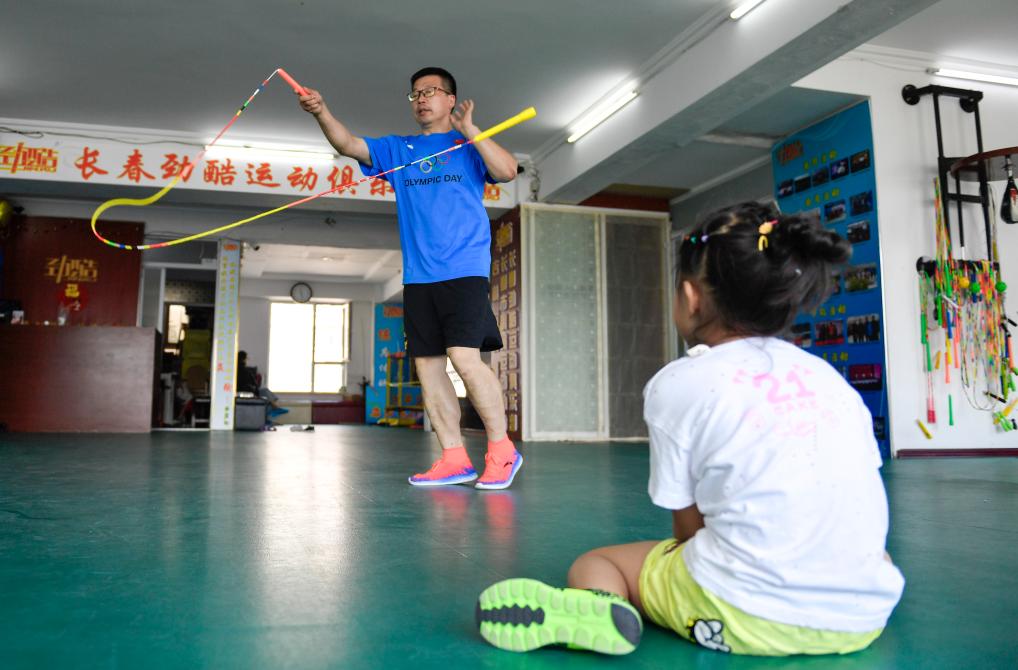 图为于大伟在长春市南湖公园进行跳绳训练。