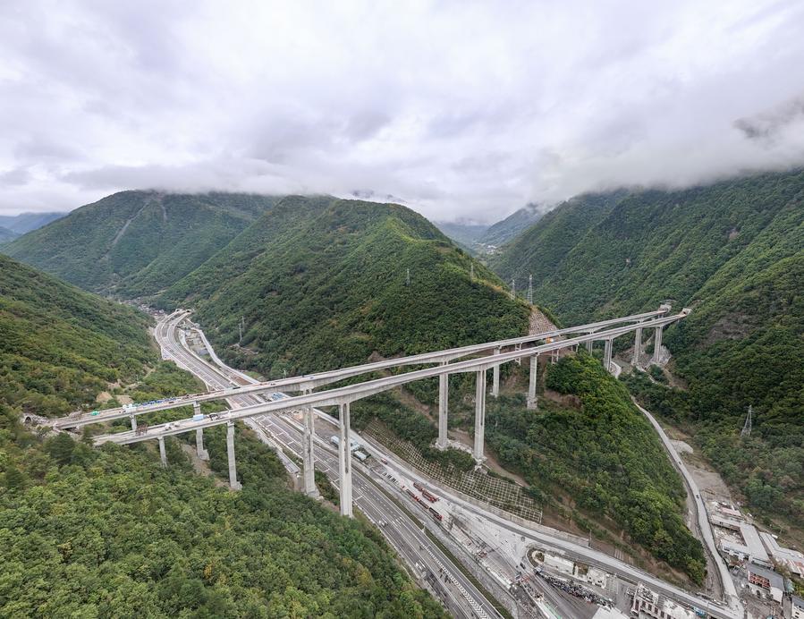 这是10月11日拍摄的正在建设中的九寨沟—绵阳高速公路(无人机照片)。九绵高速开通后,从成都至九寨沟县的时间将从原来的8小时缩短至4小时。新华社记者 王曦 摄