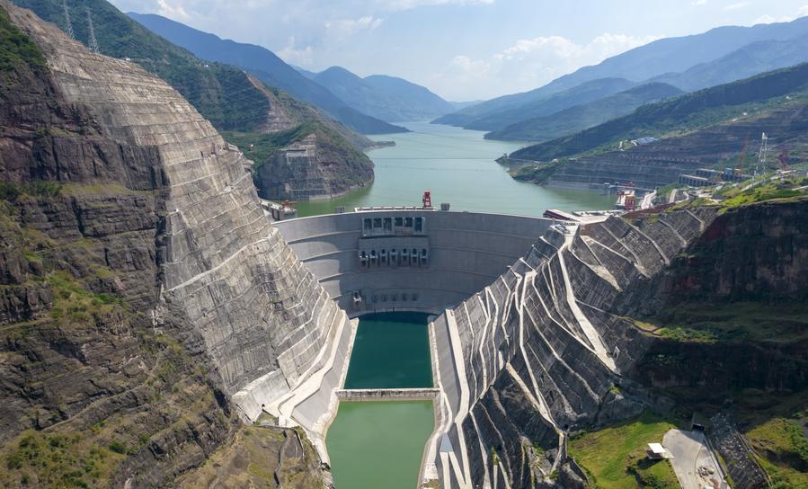 这是8月28日拍摄的白鹤滩水电站(无人机照片)。白鹤滩水电站位于云南省巧家县和四川省宁南县交界处金沙江干流,是我国实施“西电东送”的国家重大工程。新华社记者 陈欣波 摄