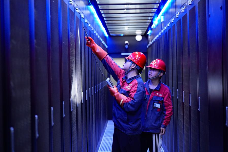 6月14日,工作人员在东数西算(贵州)智算中心内巡检。新华社记者 刘续 摄