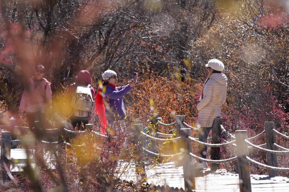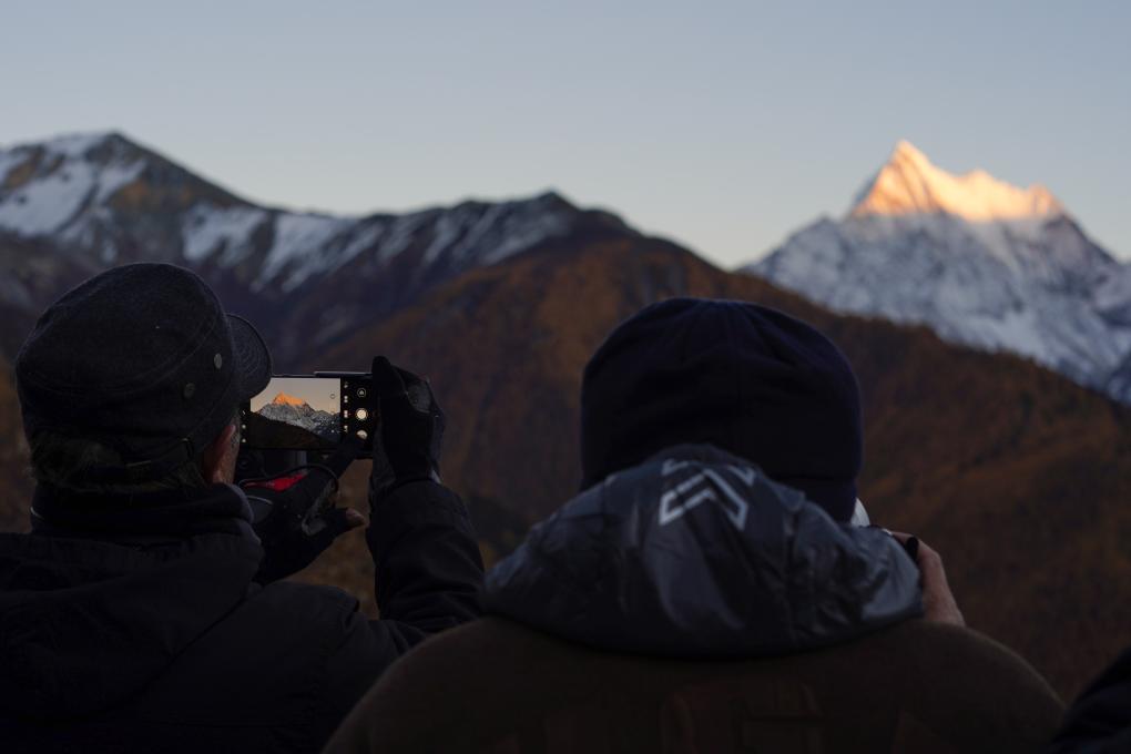 10月31日,游客在四川省甘孜藏族自治州稻城亚丁景区内拍照。新华社记者 胥冰洁 摄
