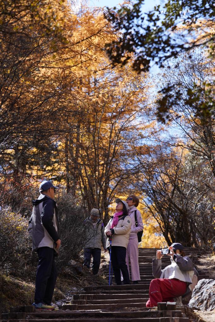 10月31日,游客在四川省甘孜藏族自治州稻城亚丁景区内游览。新华社记者 胥冰洁 摄