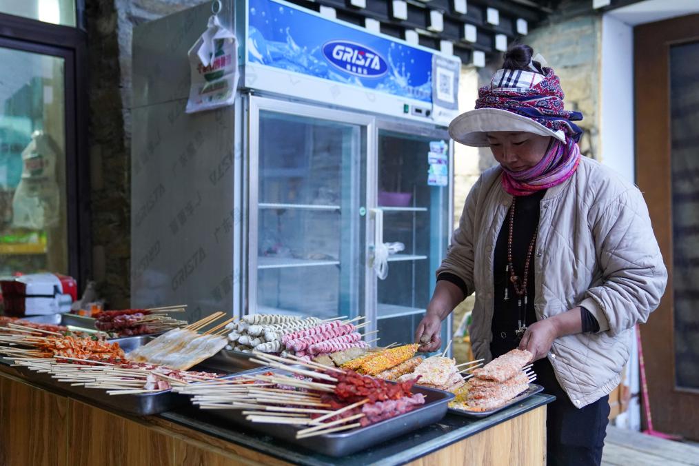 10月31日,在四川省甘孜藏族自治州稻城亚丁景区内的亚丁村,民宿工作人员为游客准备晚饭。新华社记者 胥冰洁 摄