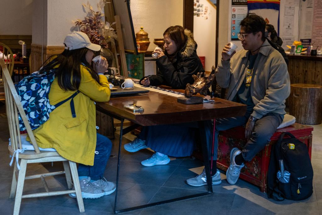 10月31日,在四川省甘孜藏族自治州稻城亚丁景区内的亚丁村,游客在一家民宿休息。新华社记者 储加音 摄