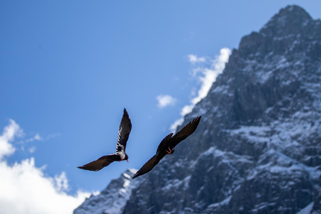 这是在四川省甘孜藏族自治州稻城亚丁景区拍摄的红嘴山鸦(10月31日摄)。新华社记者 储加音 摄