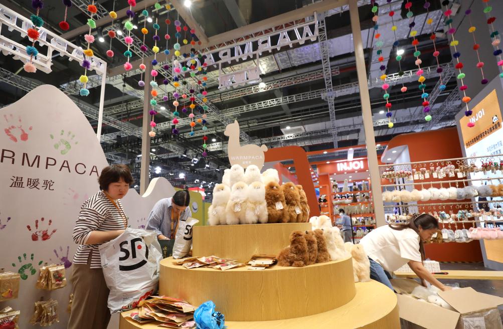 11月2日,工作人员在展馆内布置展台展品。新华社记者方喆摄