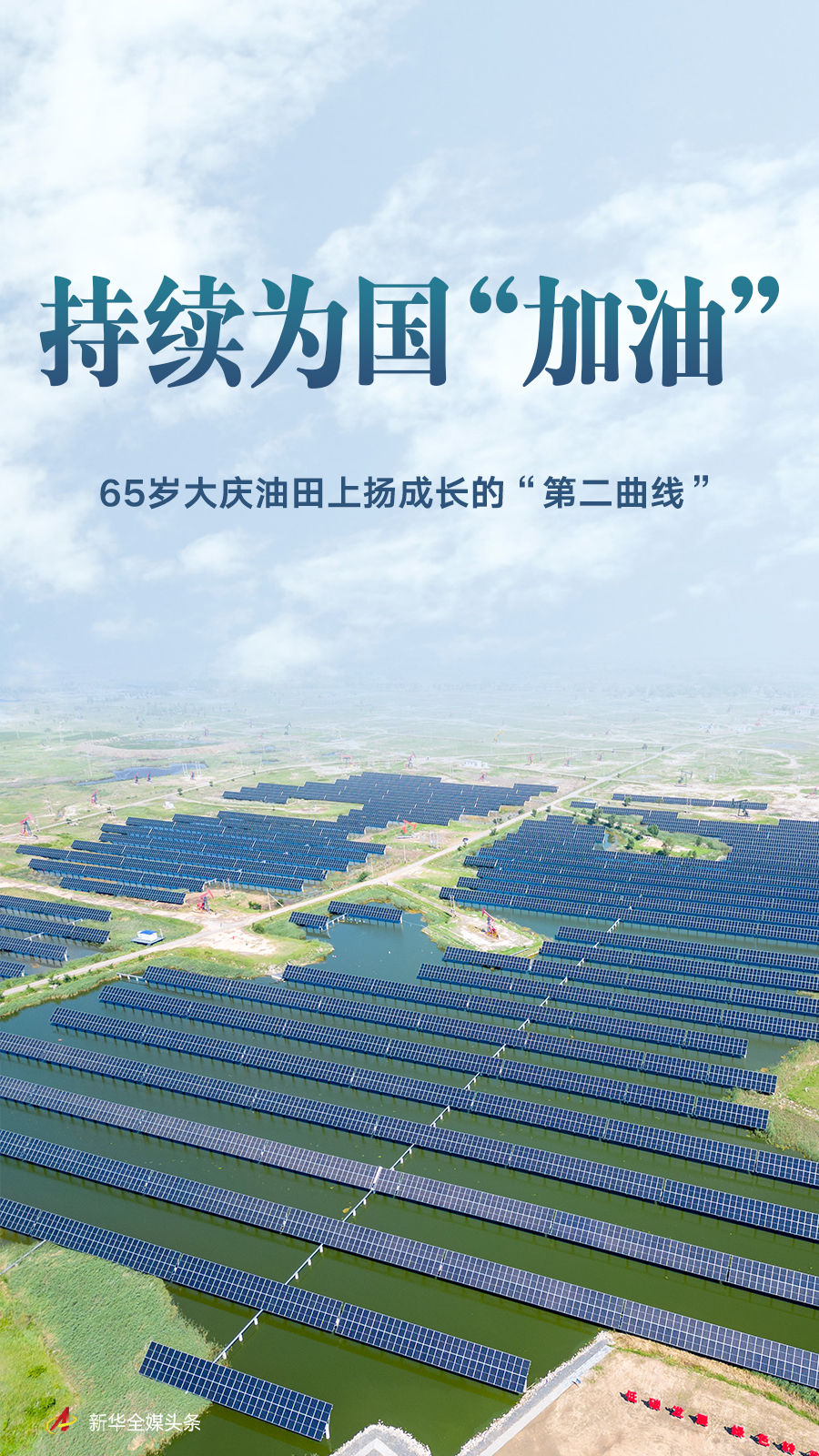 从“黑金”走向“绿电”,一台台白色风机在旷野里转动巨大叶片,一排排深蓝色的光伏板在阳光下反射熠熠光芒……老油田“追风逐日”,铺展开更多绿色发展的“新风景”。