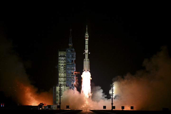 2024年10月30日,搭载神舟十九号载人飞船的长征二号F遥十九运载火箭在酒泉卫星发射中心点火发射。新华社记者 连振 摄
